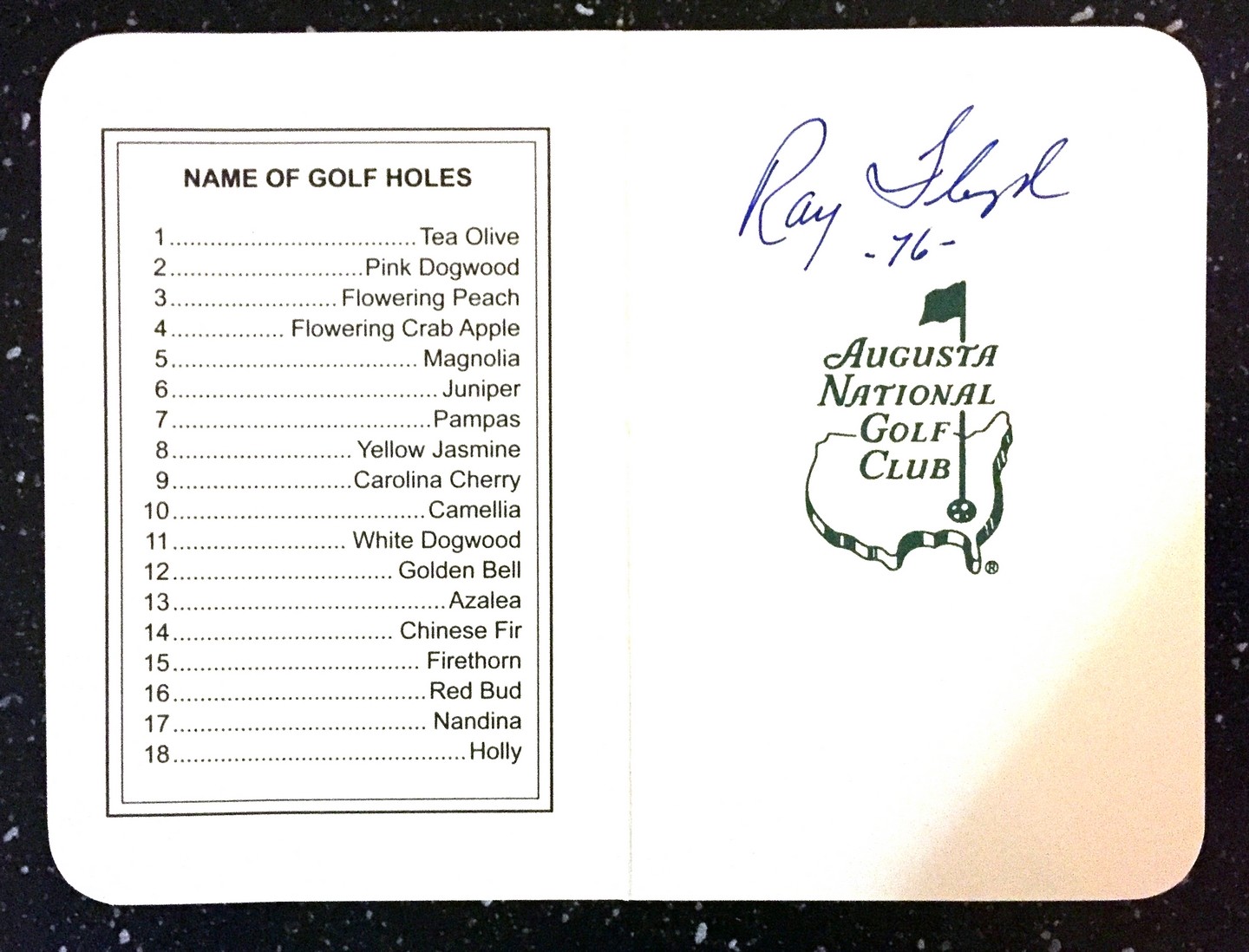 MASTERS CHAMPION RAYMOND FLOYD SIGNED AND DATED MASTERS SCORECARD COA COLLECTIBLE MEMORABILIA
