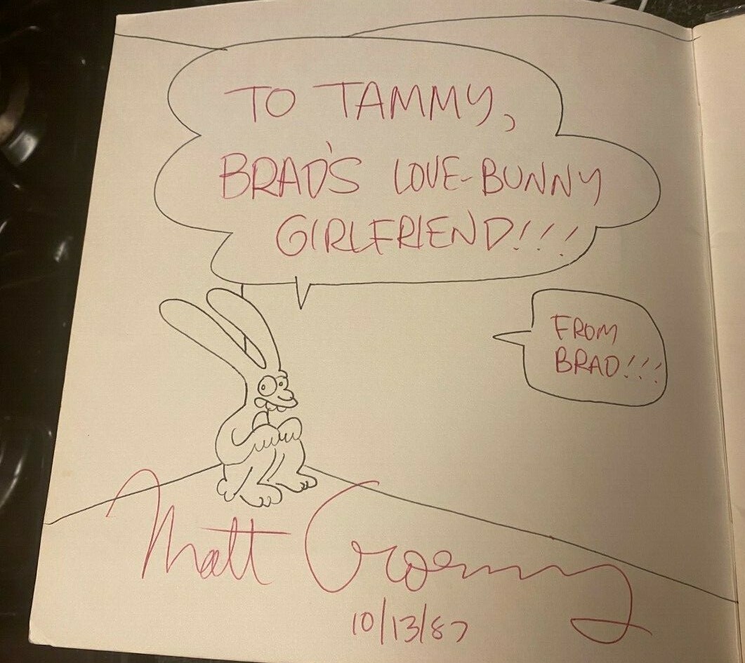 MATT GROENING SIGNED AUTOGRAPHED SKETCH SIMPSONS LOVE IS HELL VINTAGE BOOK COA COLLECTIBLE MEMORABILIA