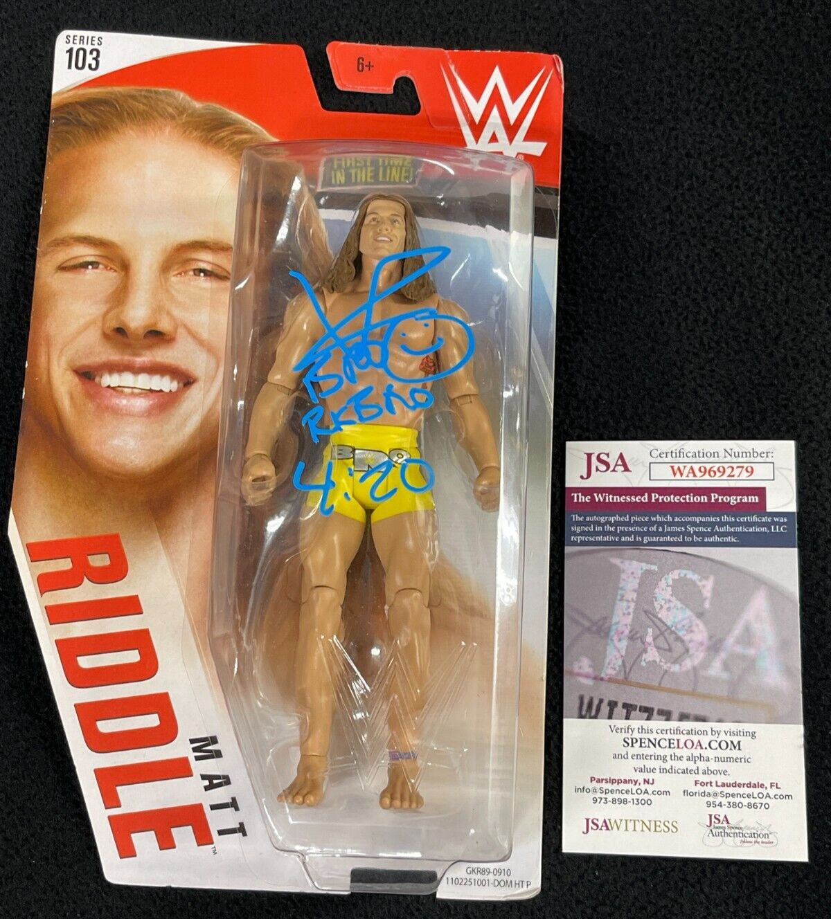 MATT RIDDLE SIGNED & INSCRIBED RK BRO 420 WWE ACTION FIGURE SERIES 103 JSA COA COLLECTIBLE MEMORABILIA