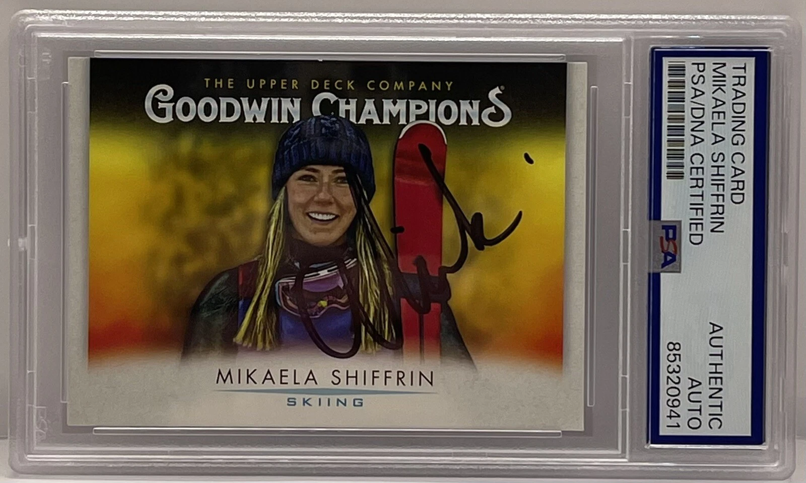 MIKAELA SHIFFRIN SIGNED 2021 UPPER DECK GODWIN CHAMPIONS CARD SKIING PSA/DNA COLLECTIBLE MEMORABILIA