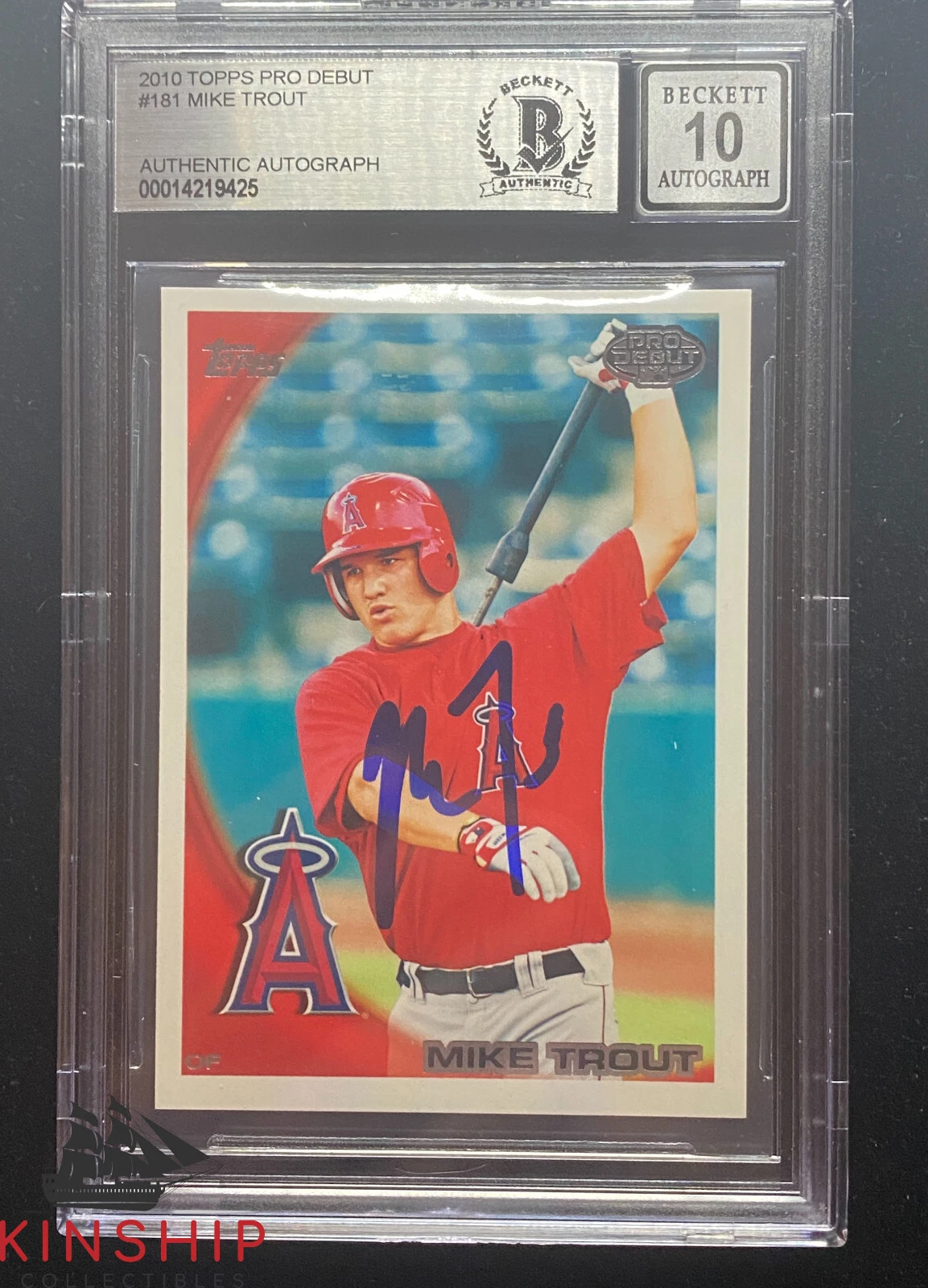 MIKE TROUT SIGNED 2010 TOPPS PRO DEBUT #181 BECKETT BAS SLABBED AUTO 10 C842 COLLECTIBLE MEMORABILIA