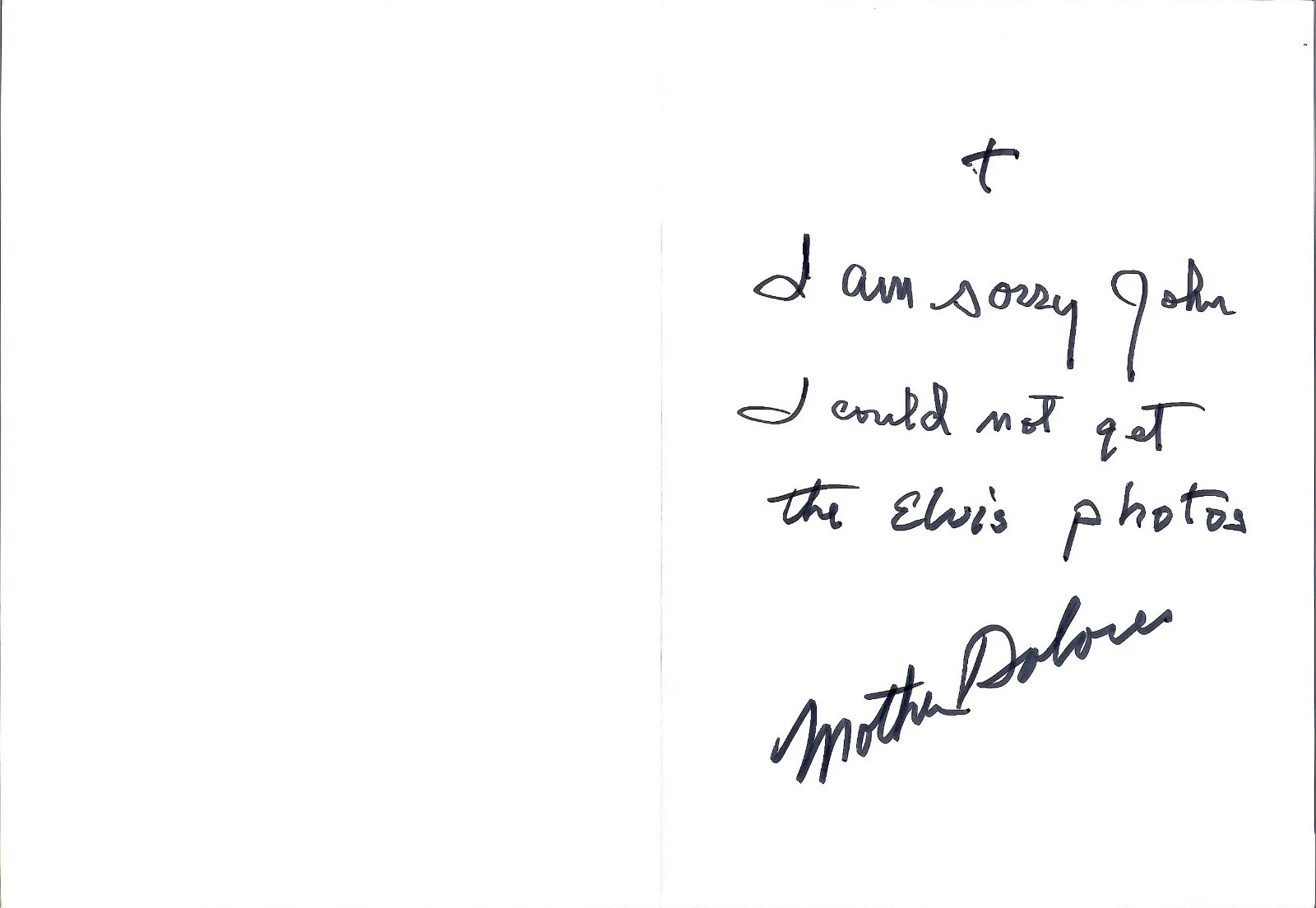 MOTHER DOLORES HART SIGNED+HAND WRITTEN NOTE INSIDE GREETING CARD+COA ELVIS COLLECTIBLE MEMORABILIA