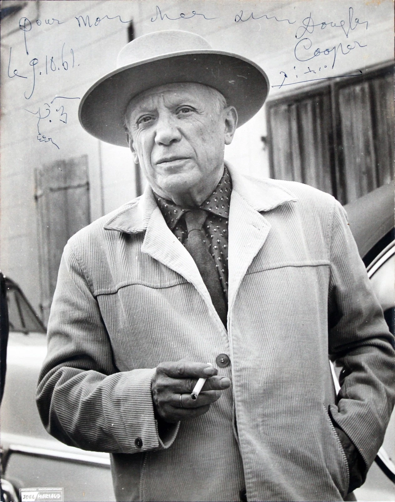 PABLO PICASSO AUTHENTIC SIGNED 9×11.5 B&W PHOTO W/ BULL SKETCH BAS #AI00150 COLLECTIBLE MEMORABILIA