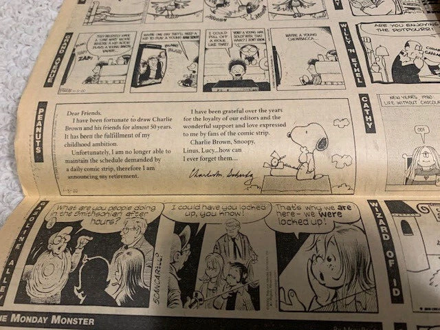 PEANUTS LAST COMIC STRIP LOT OF 3 SYRACUSE NY NEWSPAPERS CHARLES SCHULZ COLLECTIBLE MEMORABILIA
