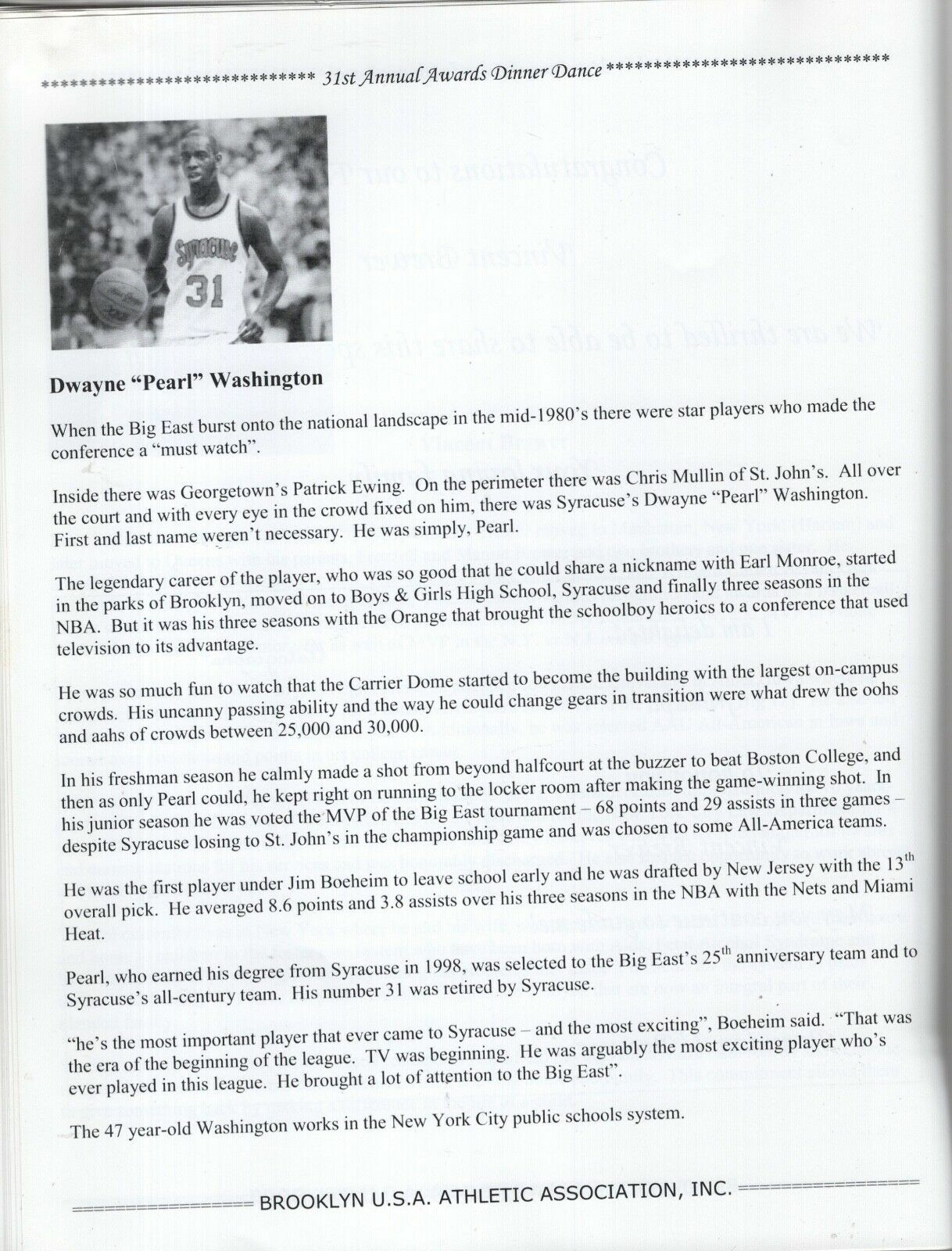 PEARL WASHINGTON BROOKLYN NY BK HALL OF FAME INDUCTION PROGRAM 2011 SYRACUSE COLLECTIBLE MEMORABILIA