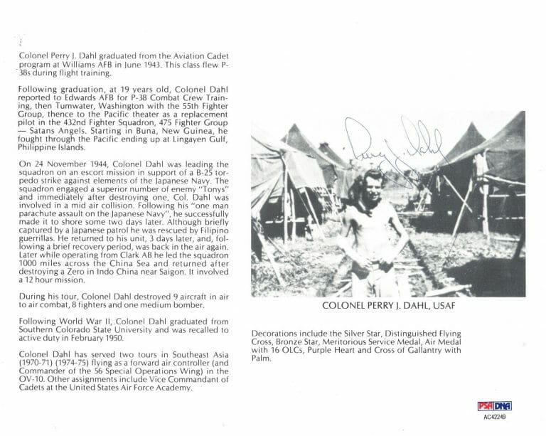 PERRY DAHL SIGNED 8X10 (D) PSA DNA AC42249 WWII ACE 9V COLLECTIBLE MEMORABILIA