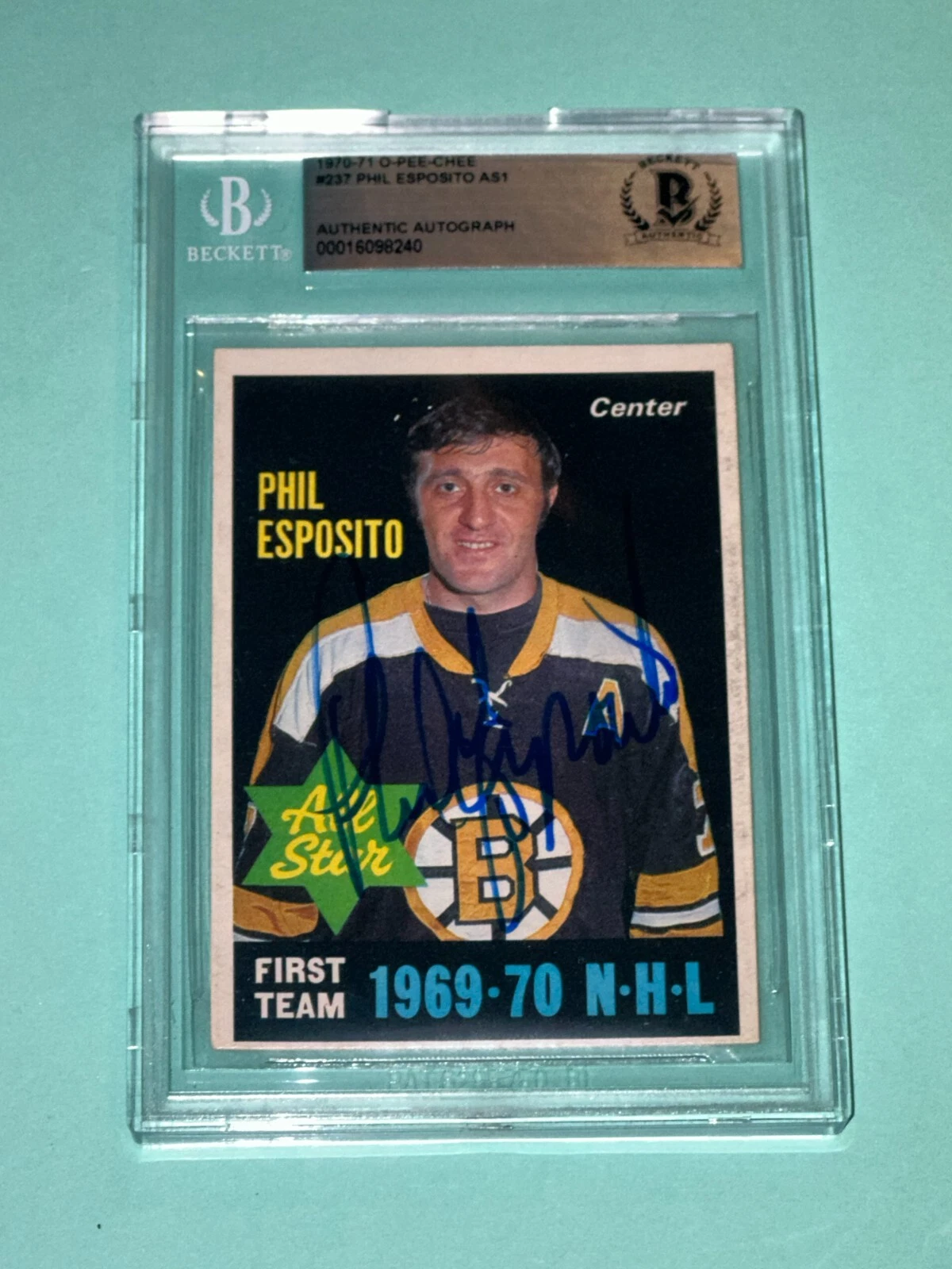 PHIL ESPOSITO AS1 SIGNED 1970-71 O-PEE-CHEE CARD #237 BECKETT BAS COLLECTIBLE MEMORABILIA