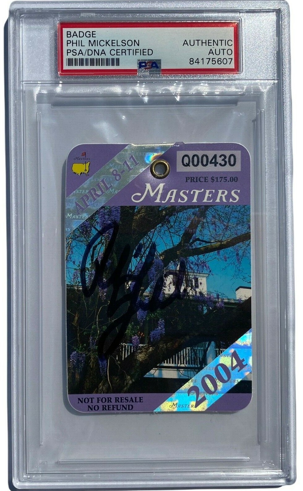 PHIL MICKELSON SIGNED AUTOGRAPHED 2004 MASTERS GOLF BADGE TICKET PSA/DNA COLLECTIBLE MEMORABILIA