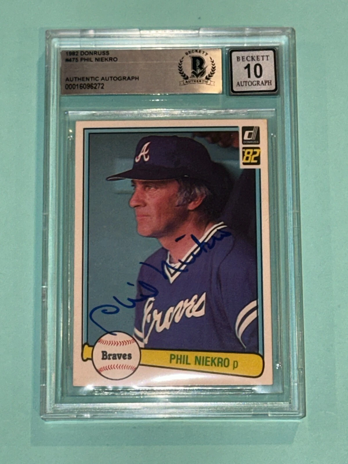 PHIL NIEKRO SIGNED 1982 DONRUSS CARD #475 BECKETT AUTHENTICATED BAS AUTO 10 COLLECTIBLE MEMORABILIA