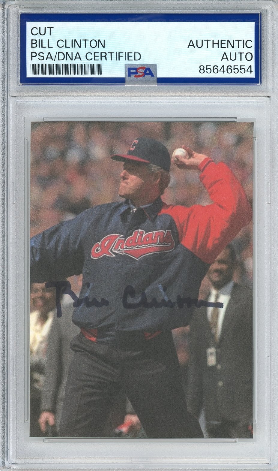 PRESIDENT BILL CLINTON SIGNED AUTOGRAPH CLEVELAND INDIANS BASEBALL CUT PSA DNA COLLECTIBLE MEMORABILIA