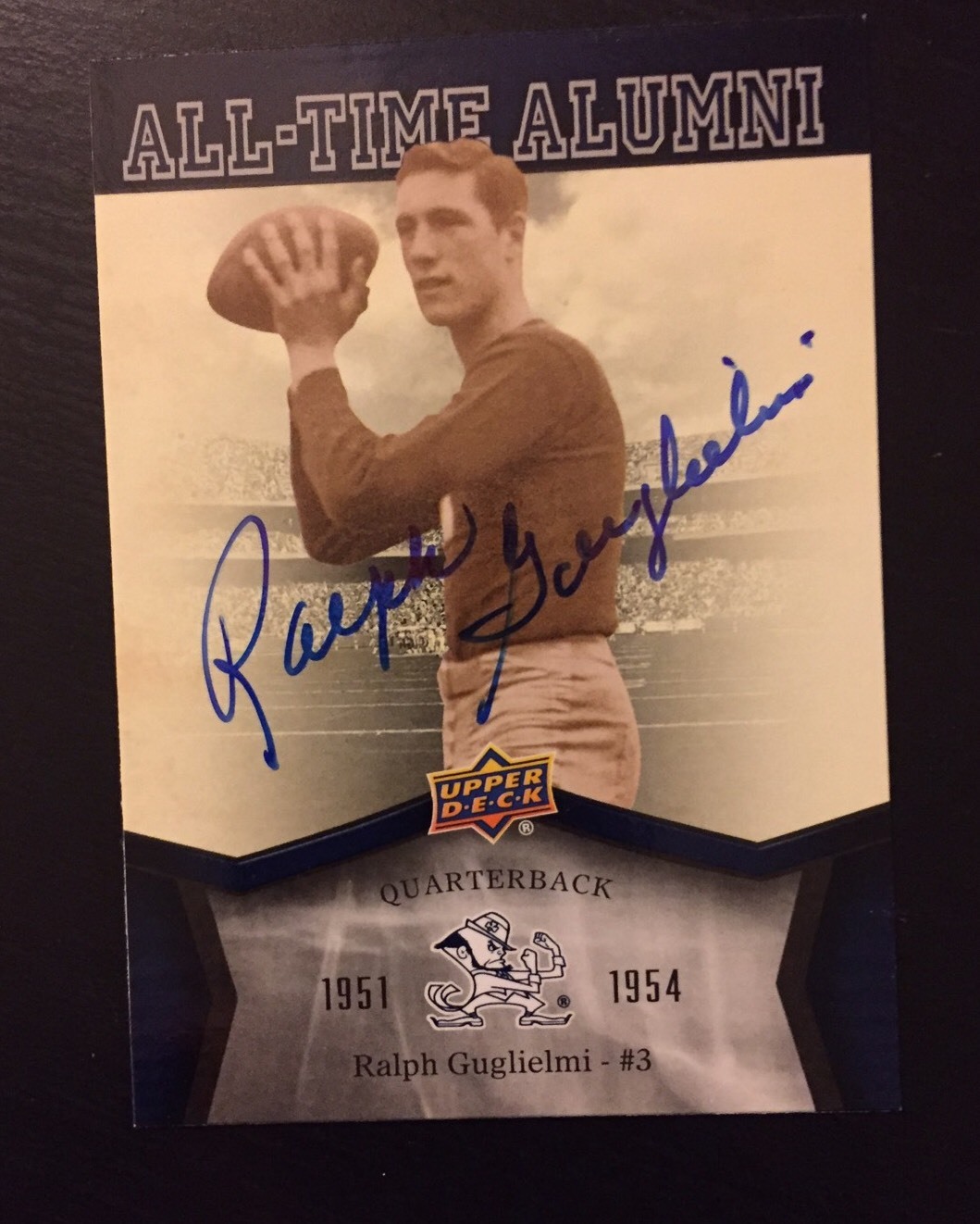 RALPH GUGLIELMI SIGNED TRADING CARD AUTOGRAPHED NOTRE DAME IRISH LEGEND COLLECTIBLE MEMORABILIA