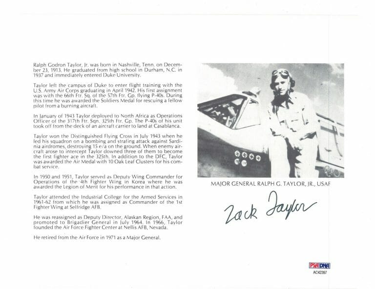 RALPH TAYLOR JR SIGNED 8X10 (D) PSA DNA AC42397 WWII ACE 7 KILLS COLLECTIBLE MEMORABILIA