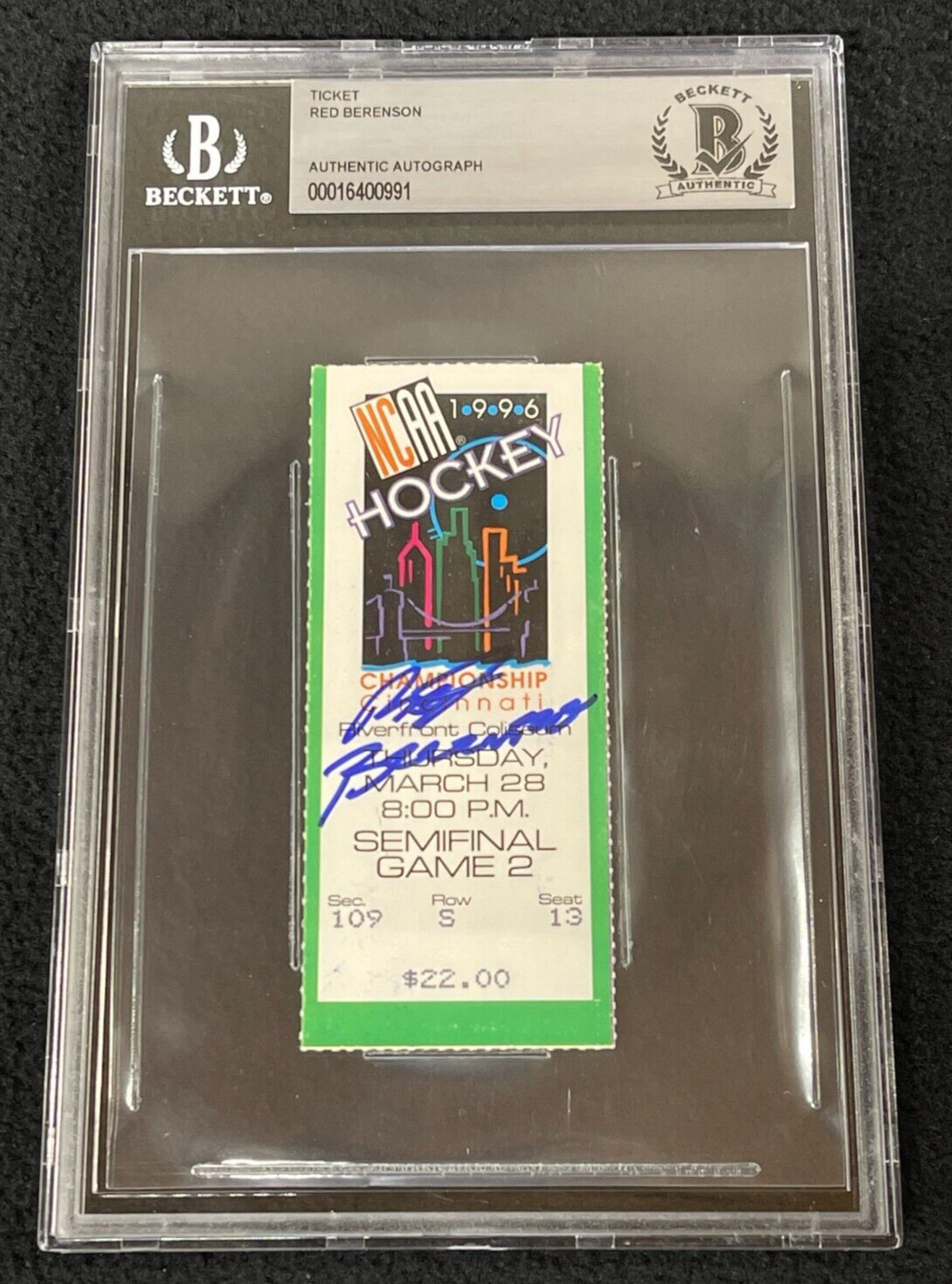 RED BERENSON SIGNED MICHIGAN WOLVERINES 1996 CHAMPIONSHIP SEMIFINALS TICKET BAS COLLECTIBLE MEMORABILIA