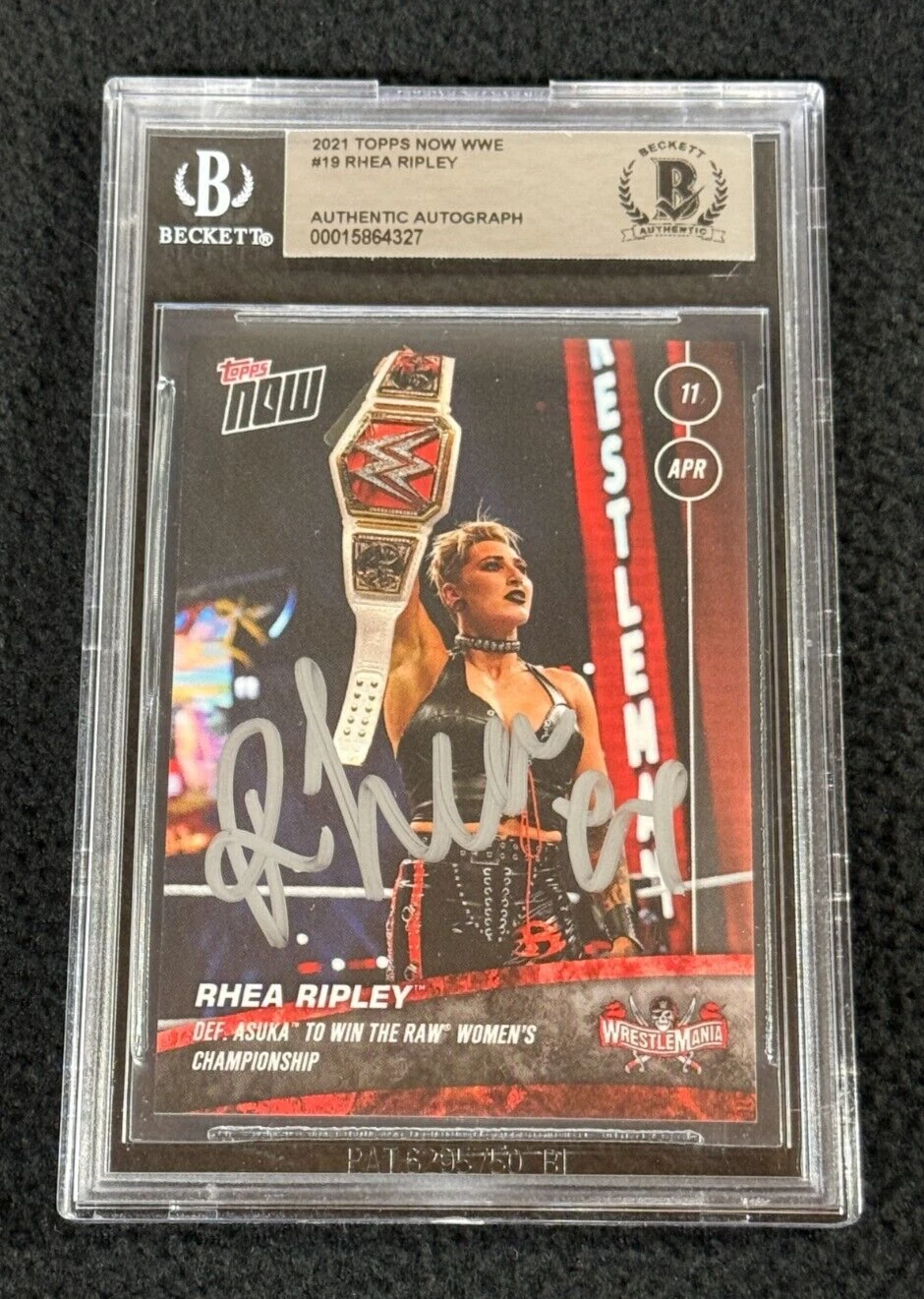 RHEA RIPLEY SIGNED 2021 TOPPS NOW WWE 1ST MAIN ROSTER CARD #19 BECKETT CERTIFIED COLLECTIBLE MEMORABILIA