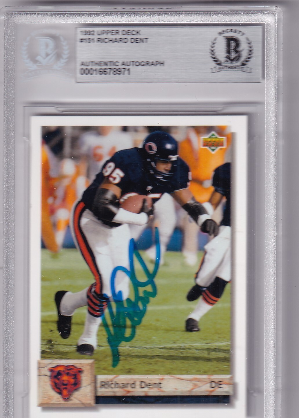 RICHARD DENT SIGNED (1992 UPPER DECK) CHICAGO BEARS FOOTBALL CARD BECKETT BAS COLLECTIBLE MEMORABILIA