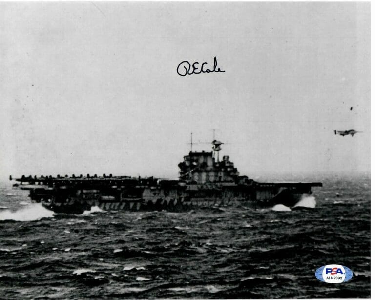 RICHARD E. COLE SIGNED 8X10 PSA DNA AH47092 (D) WWII DOOLITTLE RAID TAKE OFF COLLECTIBLE MEMORABILIA