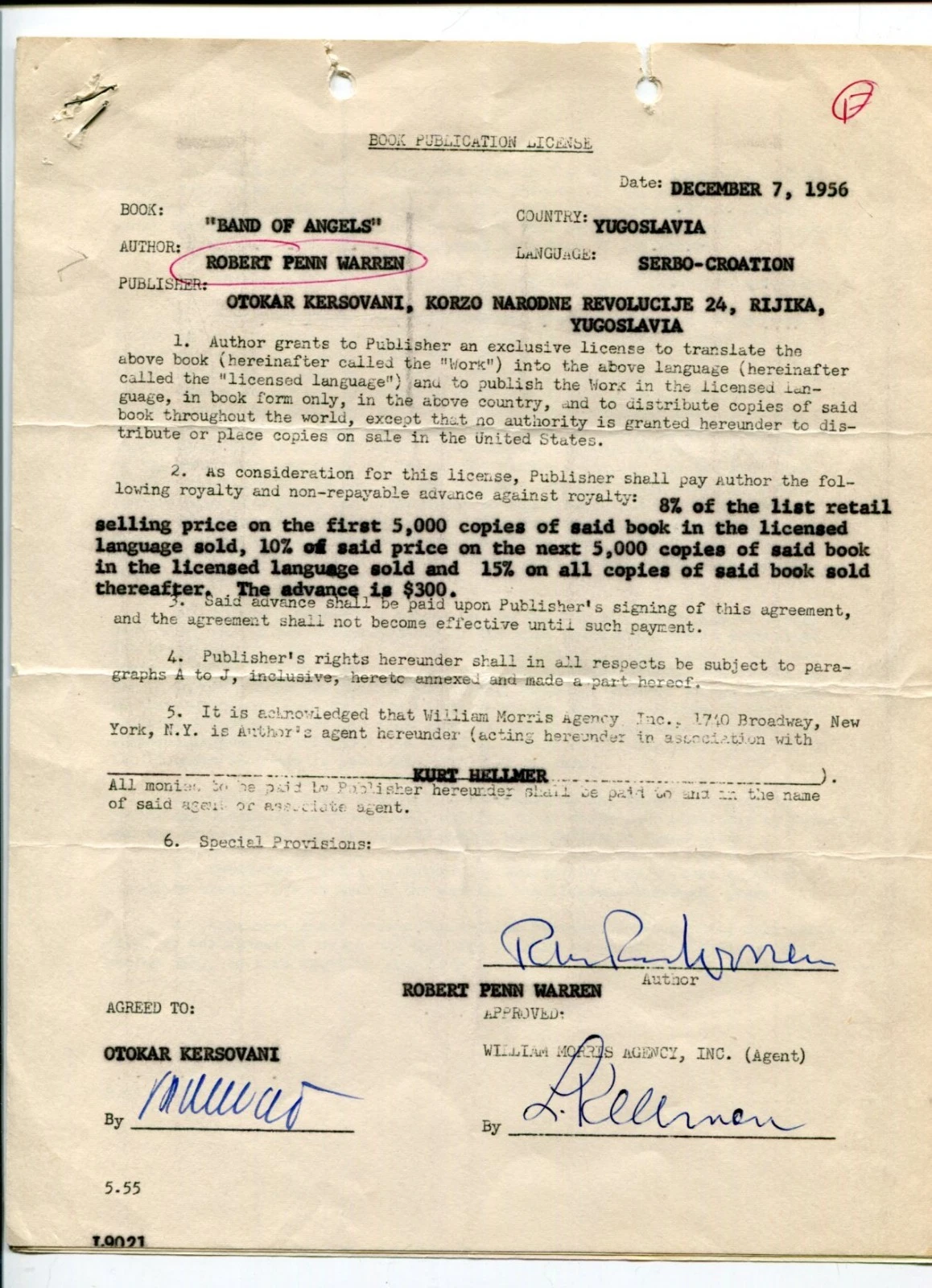 ROBERT PENN WARREN PULITZER PRIZE ALL THE KING’S MEN AUTHOR POET SIGNED CONTRACT COLLECTIBLE MEMORABILIA