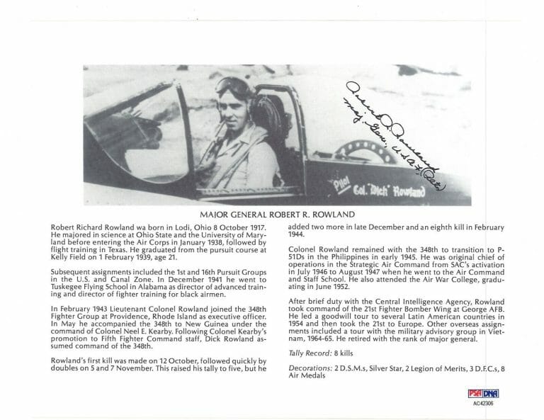 ROBERT ROWLAND SIGNED 8X10 (D) PSA DNA AC42306 WWII ACE 8 KILLS COLLECTIBLE MEMORABILIA