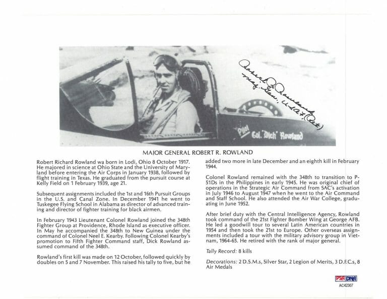 ROBERT ROWLAND SIGNED 8X10 (D) PSA DNA AC42307 WWII ACE 8 KILLS COLLECTIBLE MEMORABILIA