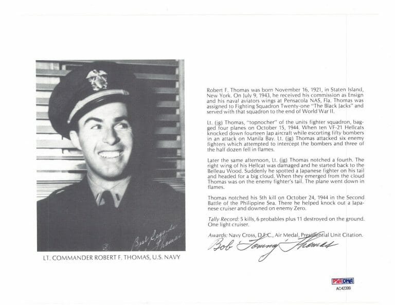 ROBERT THOMAS SIGNED 8X10 (D) PSA DNA AC42399 WWII ACE 5 KILLS COLLECTIBLE MEMORABILIA