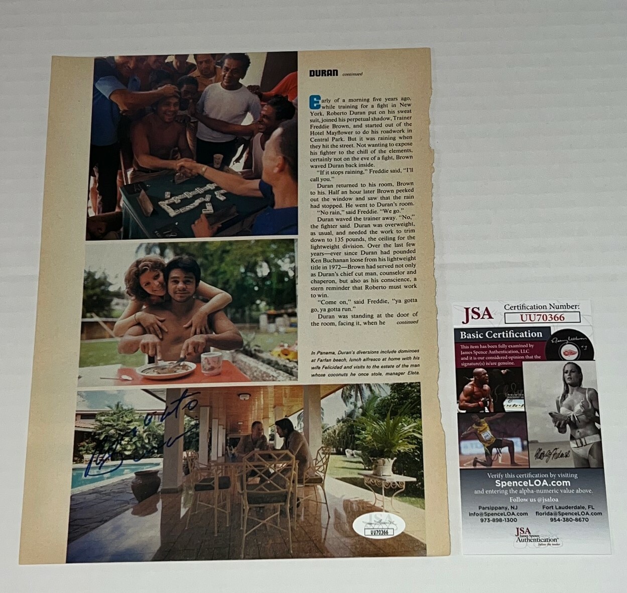 ROBERTO DURAN SIGNED MAGAZINE PAGE BOXING CHAMP AUTOGRAPHED JSA COLLECTIBLE MEMORABILIA