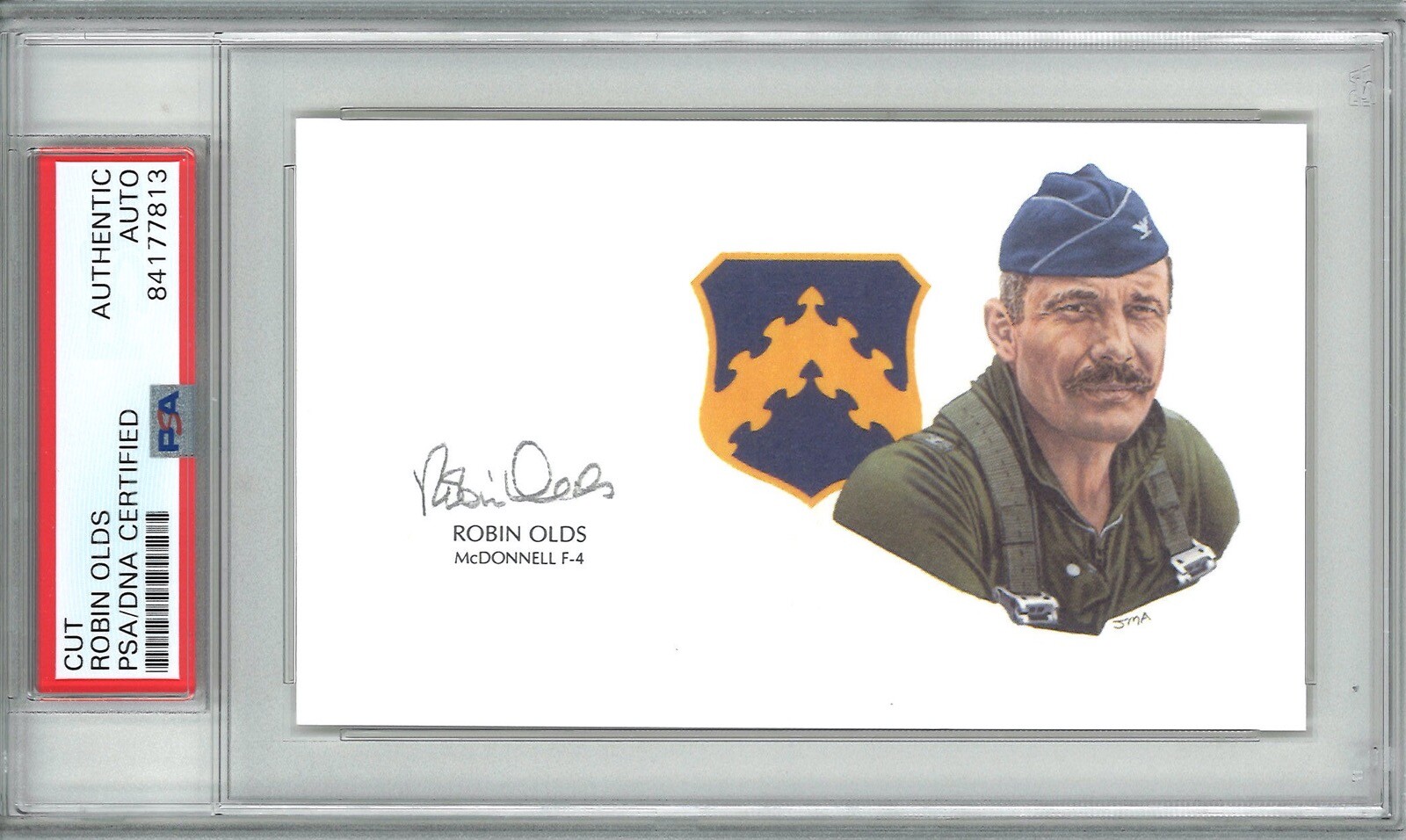ROBIN OLDS SIGNED CUT SIGNATURE PSA DNA 84177813 (D) WWII VIETNAM ACE 17V COLLECTIBLE MEMORABILIA