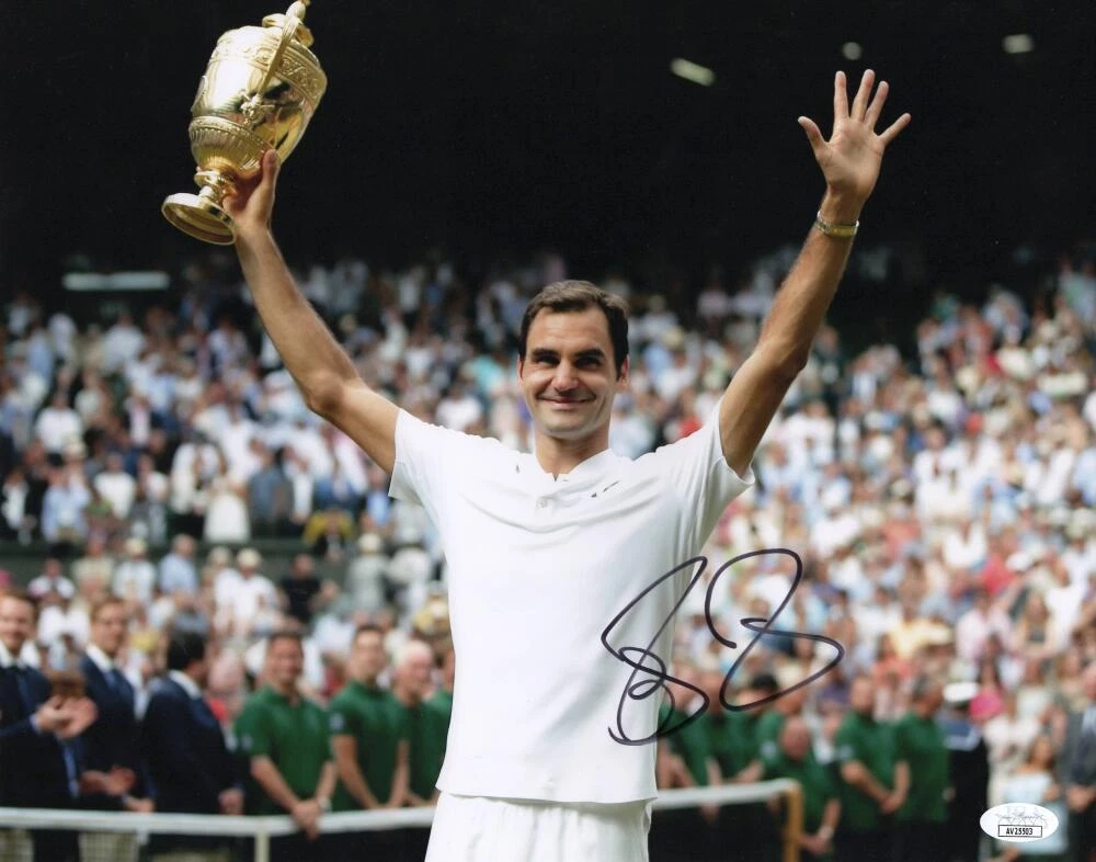 ROGER FEDERER SIGNED AUTOGRAPH 11×14 PHOTO – TENNIS LEGEND WIMBLEDON TROPHY JSA COLLECTIBLE MEMORABILIA