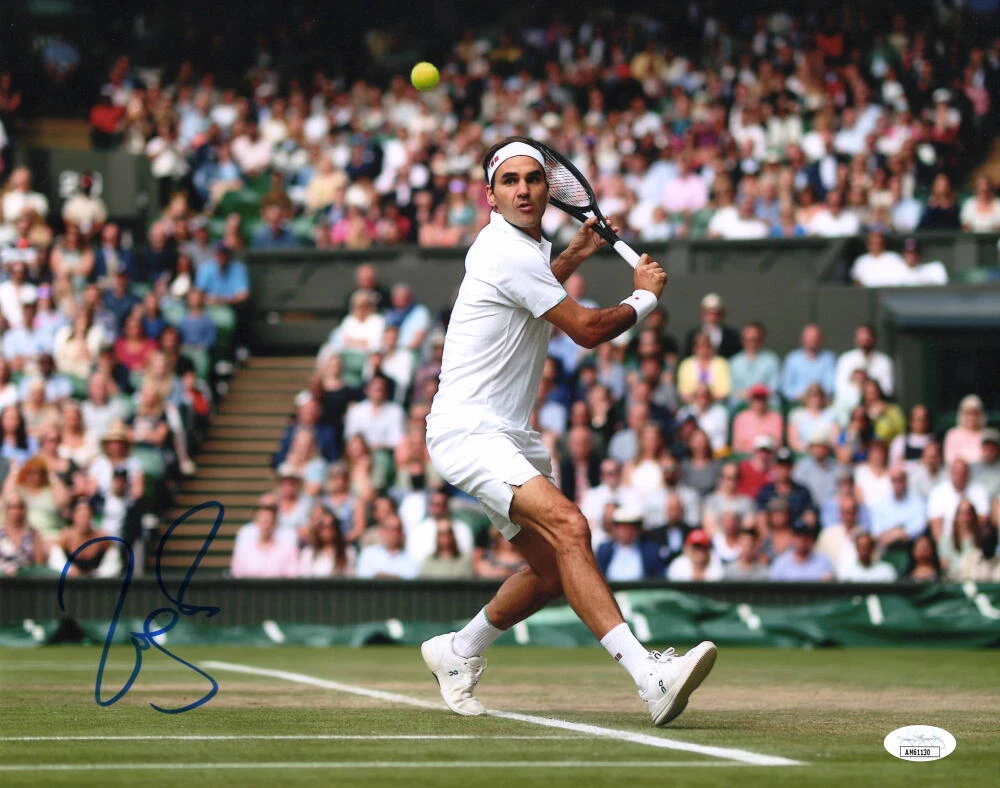 ROGER FEDERER SIGNED AUTOGRAPH 11×14 PHOTO – WIMBLEDON BACKHAND W/ JSA COA COLLECTIBLE MEMORABILIA