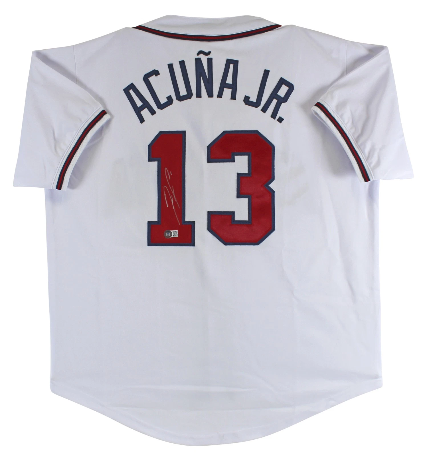 RONALD ACUNA JR. AUTHENTIC SIGNED WHITE PRO STYLE JERSEY BAS WITNESSED COLLECTIBLE MEMORABILIA