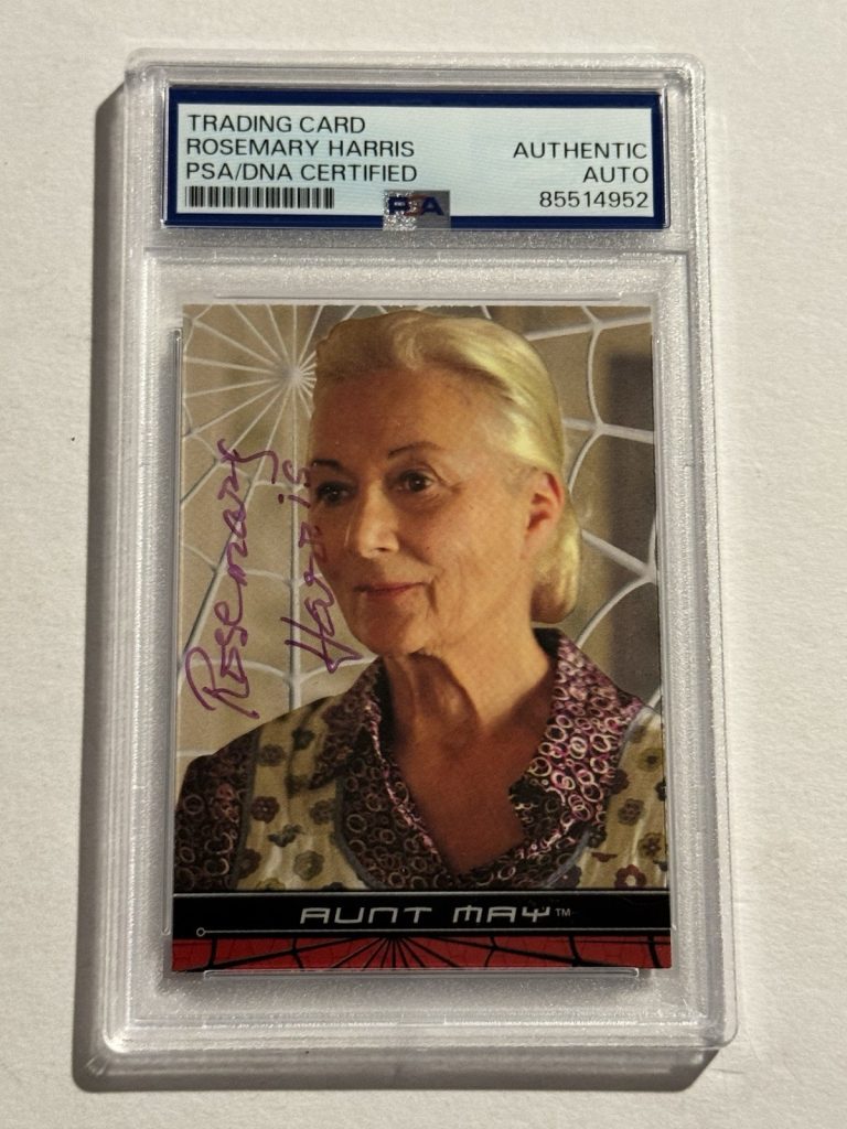 ROSEMARY HARRIS SIGNED AUTO 2002 TOPPS MARVEL SPIDER-MAN AUNT MAY #5 PSA COLLECTIBLE MEMORABILIA