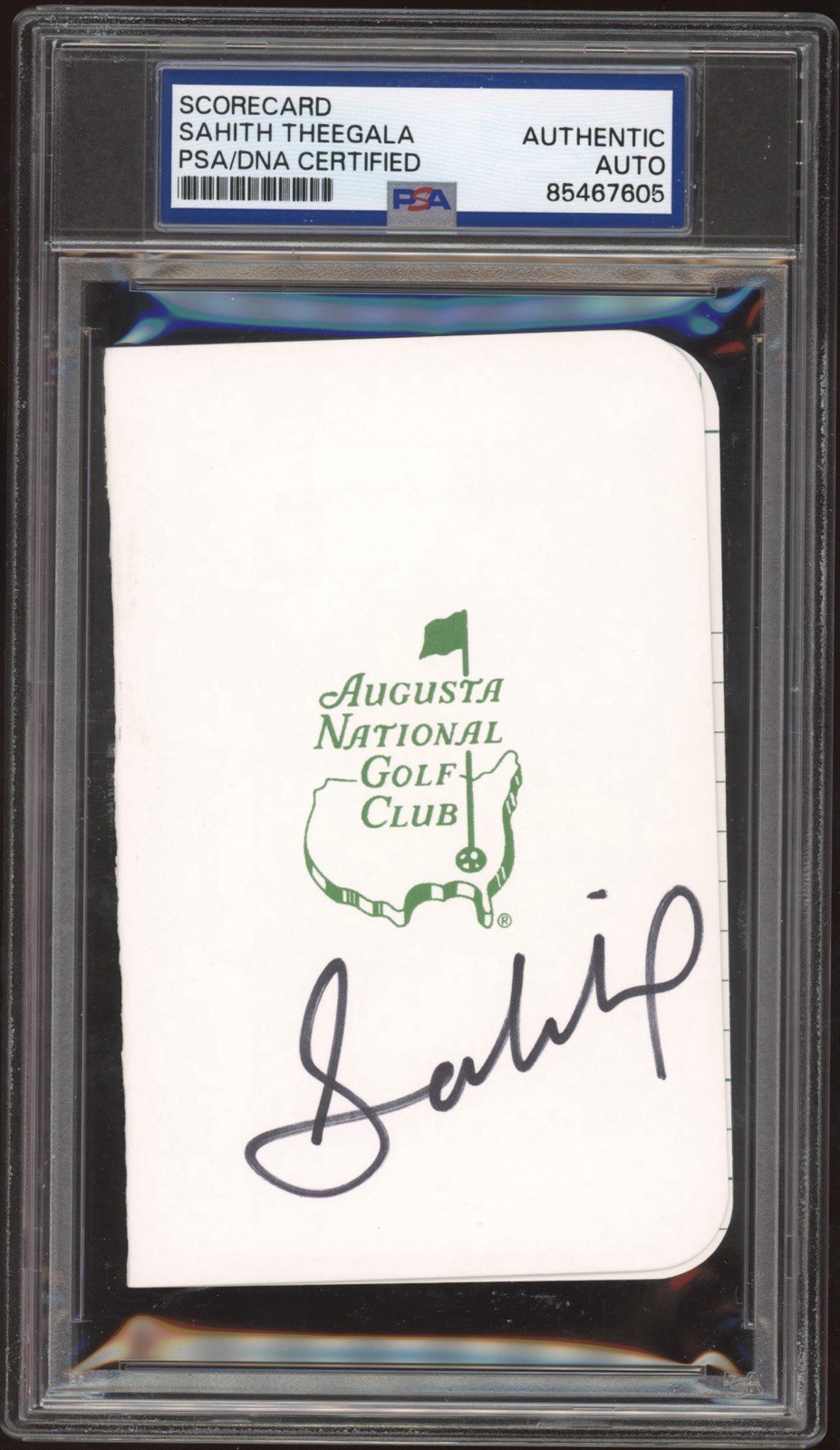 SAHITH THEEGALA SIGNED AUGUSTA MASTERS SCORECARD PSA ENCAPSULATED PGA GOLF AUTO COLLECTIBLE MEMORABILIA