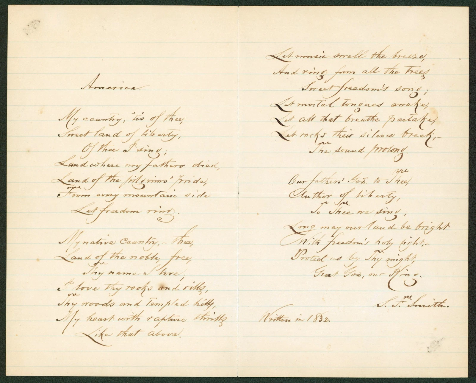 SAMUEL FRANCIS SMITH SIGNED 8×10 HAND WRITTEN POEM AUTO GRADED 9! BAS #AB14002 COLLECTIBLE MEMORABILIA