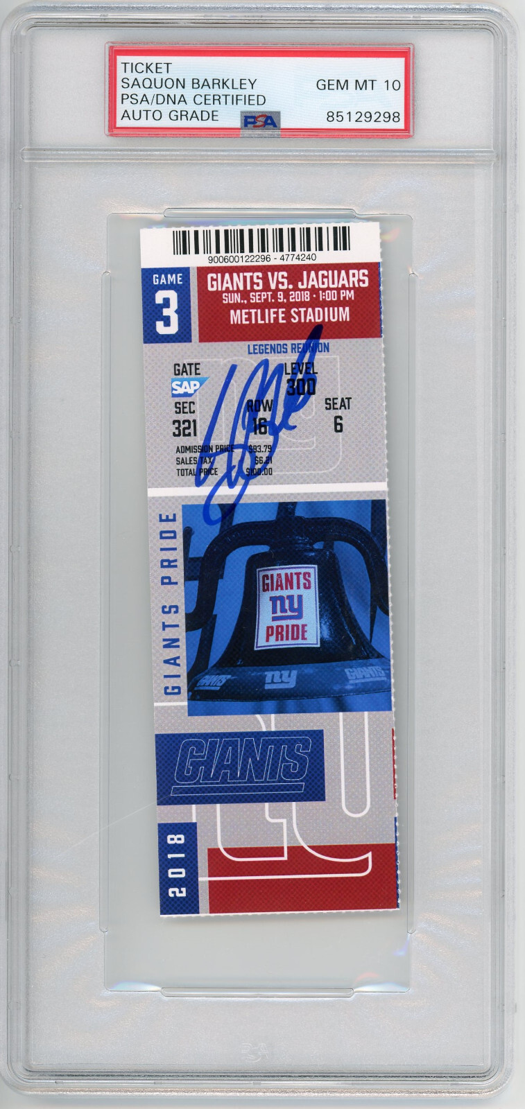 SAQUON BARKLEY SIGNED AUTOGRAPHED NFL DEBUT TICKET AUTO PSA/DNA GEM MINT 10 COLLECTIBLE MEMORABILIA