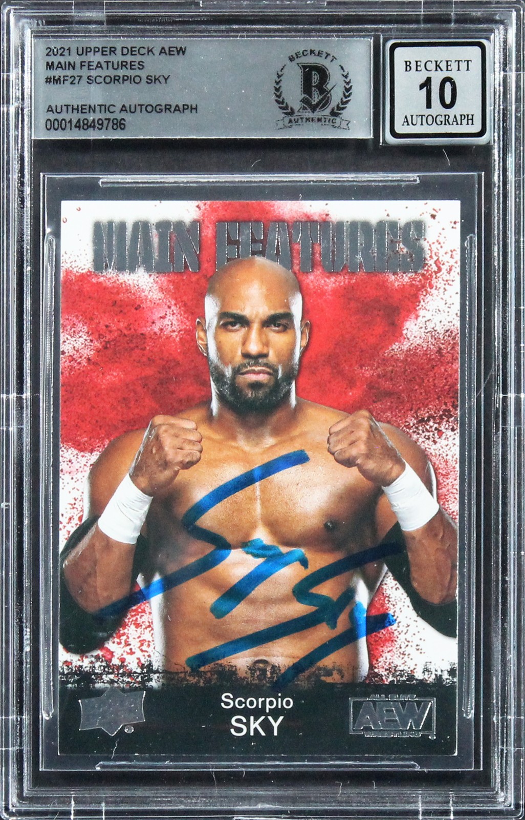 SCORPIO SKY SIGNED 2021 UPPER DECK AEW MAIN FEATURES #MF27 CARD AUTO 10 BAS SLAB COLLECTIBLE MEMORABILIA