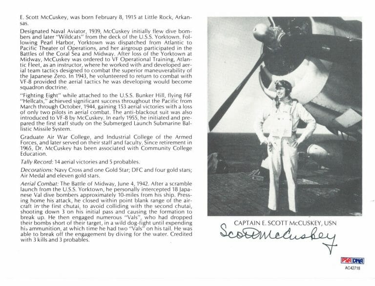 SCOTT MCCUSKEY SIGNED 8X10 (D) PSA DNA AC42718 WWII ACE 14 KILLS COLLECTIBLE MEMORABILIA