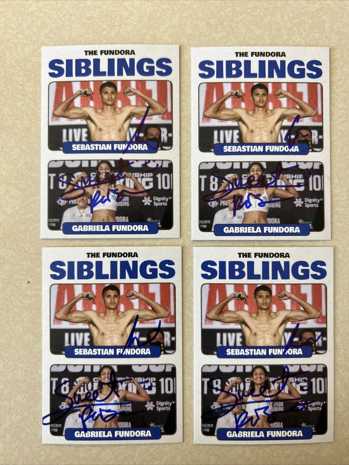 SEBASTIAN & GABRIELA FUNDORA SIGNED AUTOGRAPH TRADING CARD COA BOXING CHAMPS COLLECTIBLE MEMORABILIA