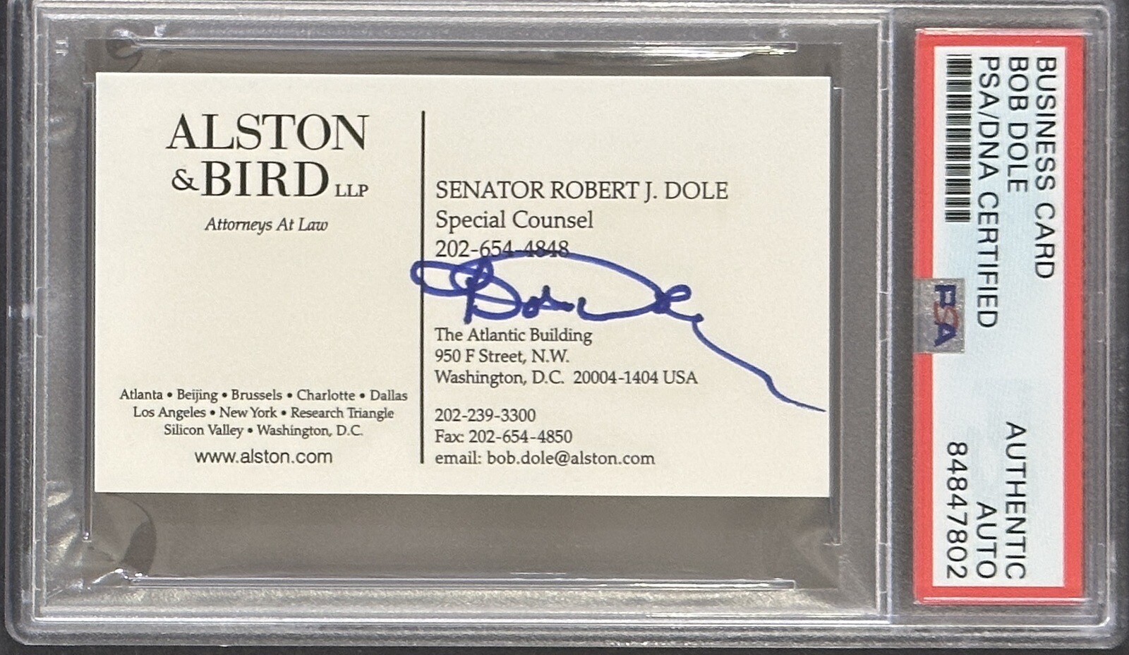 SENATOR BOB DOLE SIGNED BUSINESS CARD PSA DNA AUTOGRAPH PRESIDENT CONTENDER RIP! COLLECTIBLE MEMORABILIA