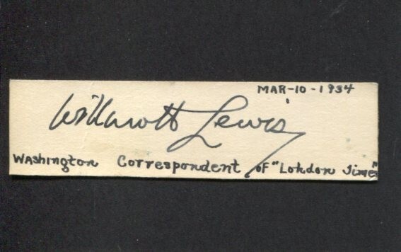 SIR WILLMOTT LEWIS JOURNALIST LONDON TIMES AUTHOR LECTURER SIGNED AUTOGRAPH COLLECTIBLE MEMORABILIA