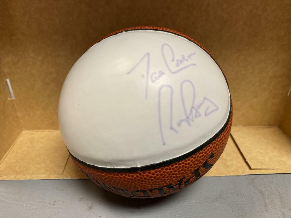 SPALDING ACC MINI BASKETBALL SIGNED BY DAVE COWENS RICK BARRY W/ COA COLLECTIBLE MEMORABILIA