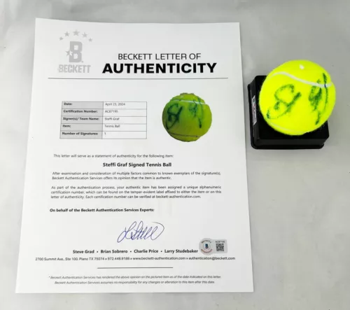 STEFFI GRAF SIGNED TENNIS BALL BECKETT BAS 4 COA COLLECTIBLE MEMORABILIA