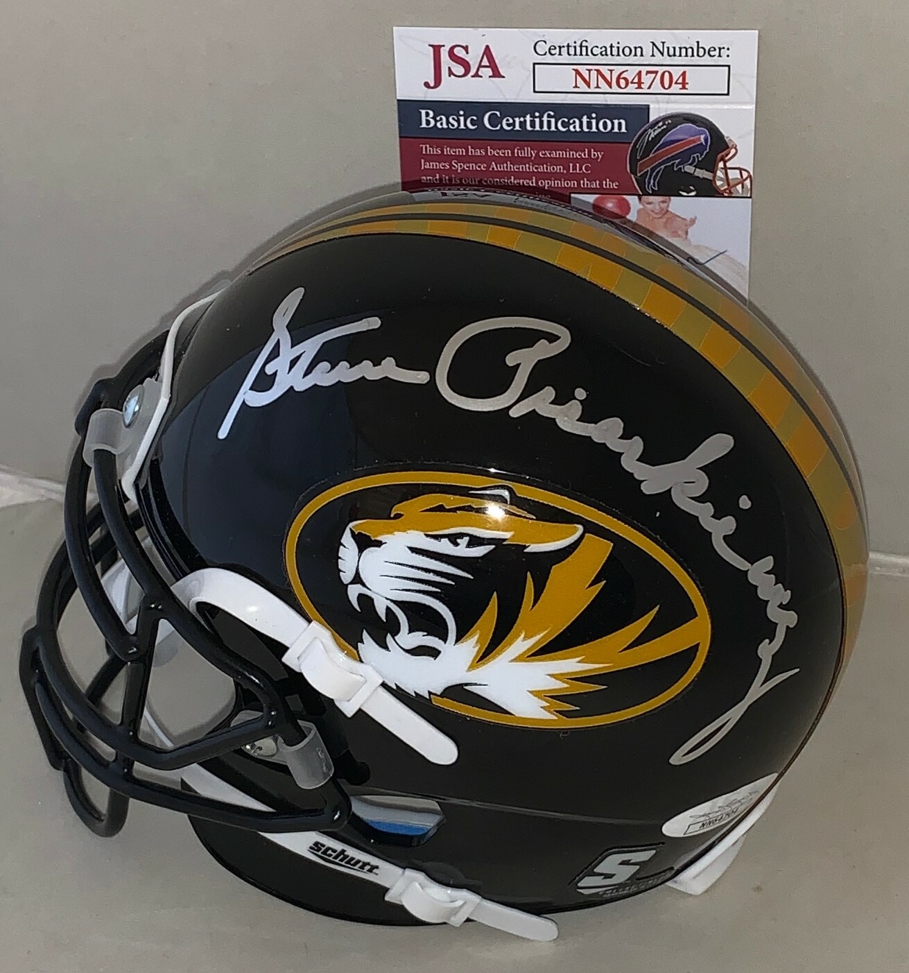 STEVE PISARKIEWICZ SIGNED MISSOURI TIGERS MINI HELMET AUTOGRAPHED JSA COLLECTIBLE MEMORABILIA