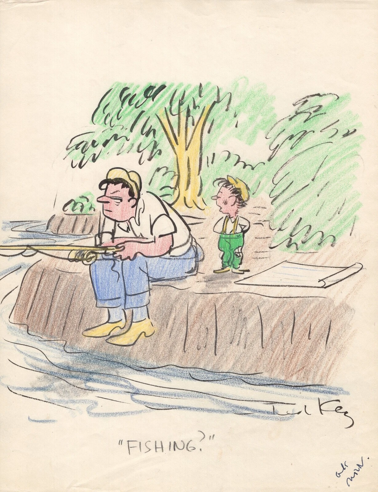 TED KEY HAND SIGNED ORIGINAL 1950’S COLOR ARTWORK RARE HAZEL CARTOONIST COLLECTIBLE MEMORABILIA