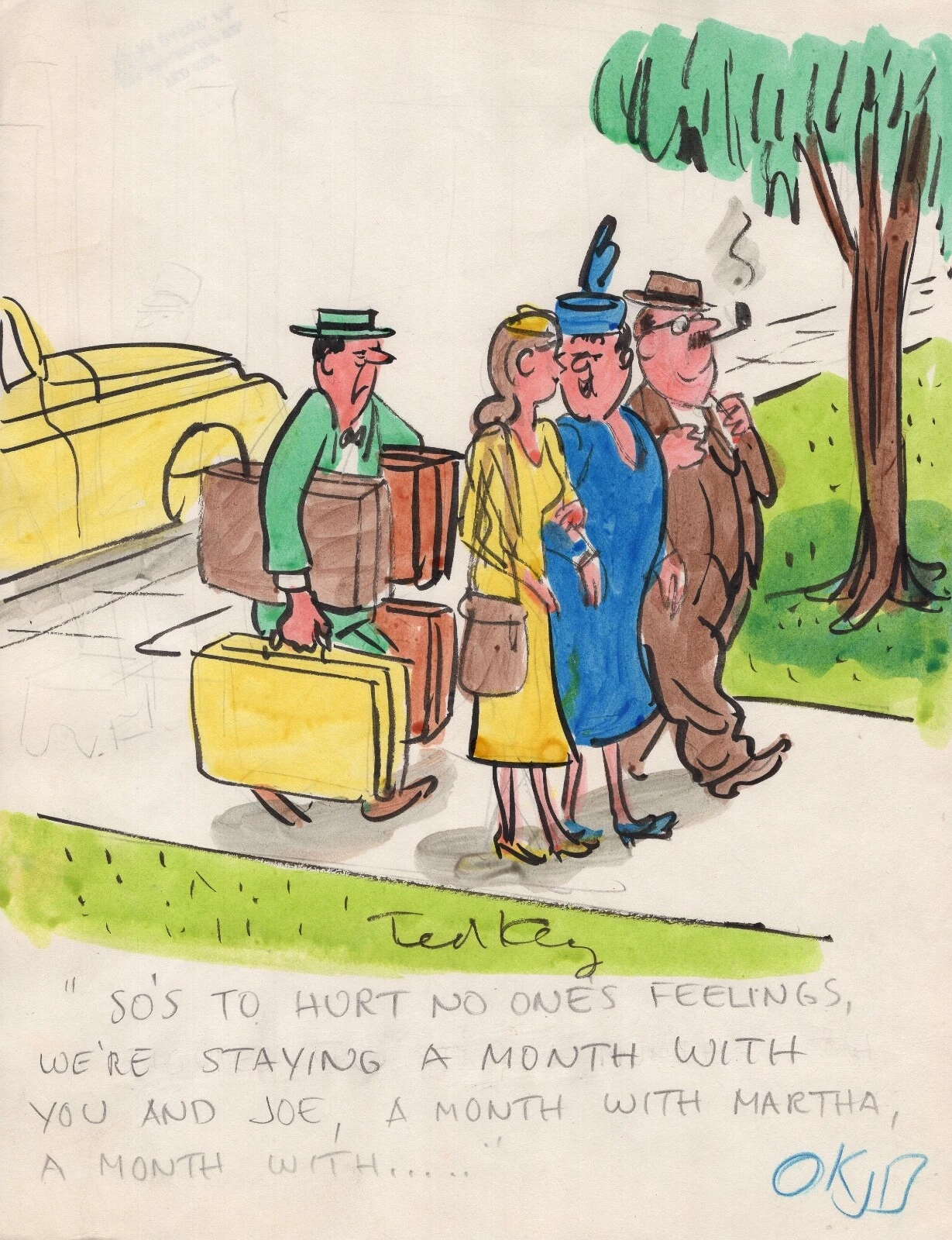 TED KEY HAND SIGNED ORIGINAL 1950’S COLOR HAZEL ARTWORK GREAT CARTOONIST COLLECTIBLE MEMORABILIA