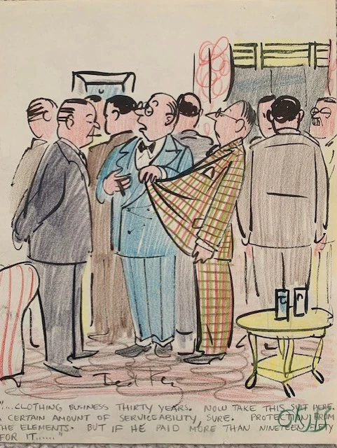 TED KEY SIGNED ORIGINAL 1950’S COLOR ARTWORK PLAID SUIT HAZEL CARTOONIST COLLECTIBLE MEMORABILIA
