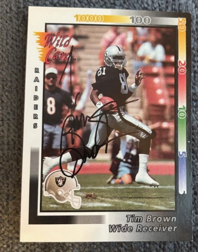 TIM BROWN SIGNED AUTOGRAPHED 1992 WILD CARD #71 RAIDERS COLLECTIBLE MEMORABILIA