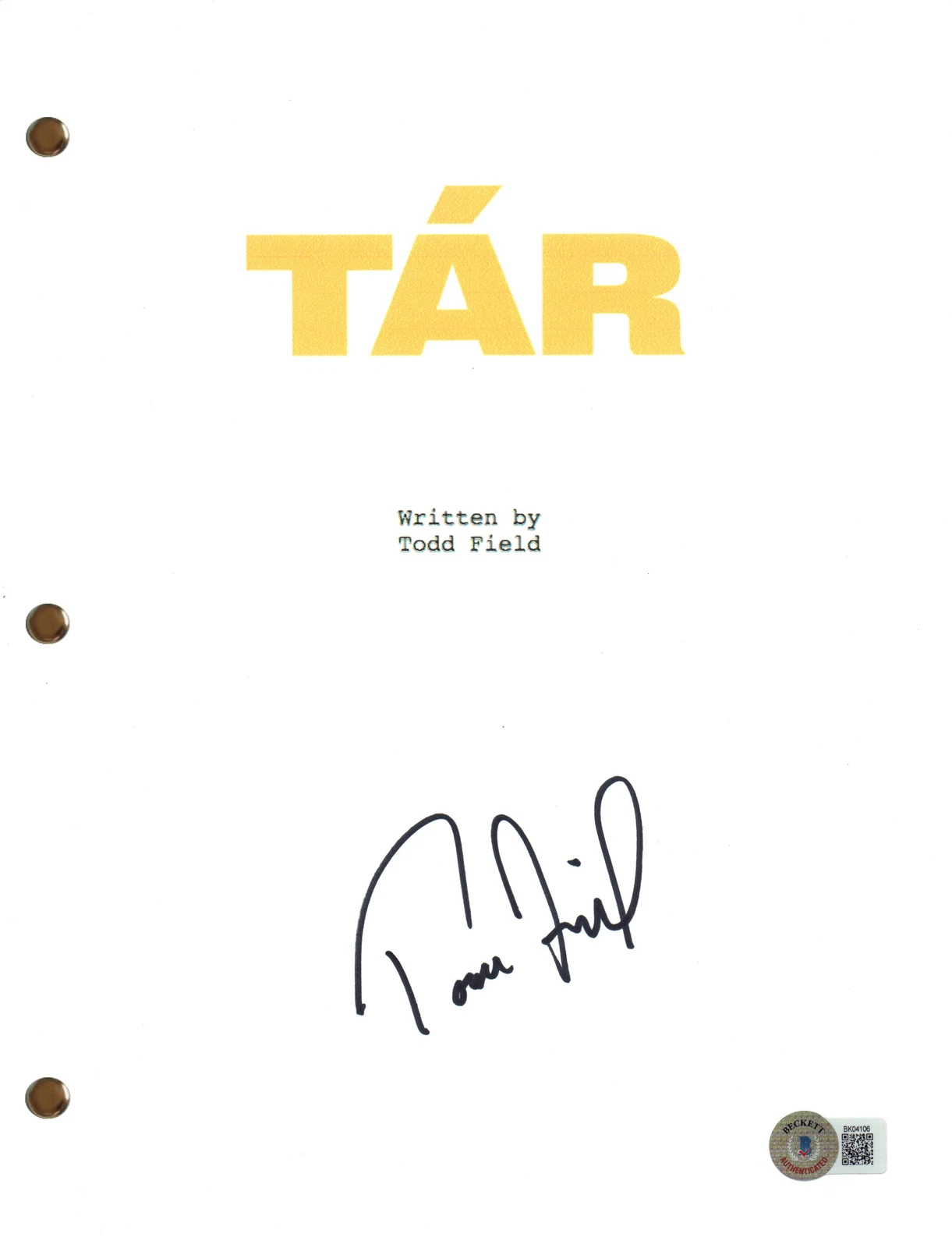 TODD FIELD SIGNED AUTOGRAPH TAR MOVIE SCRIPT FULL SCREENPLAY BECKETT COA COLLECTIBLE MEMORABILIA