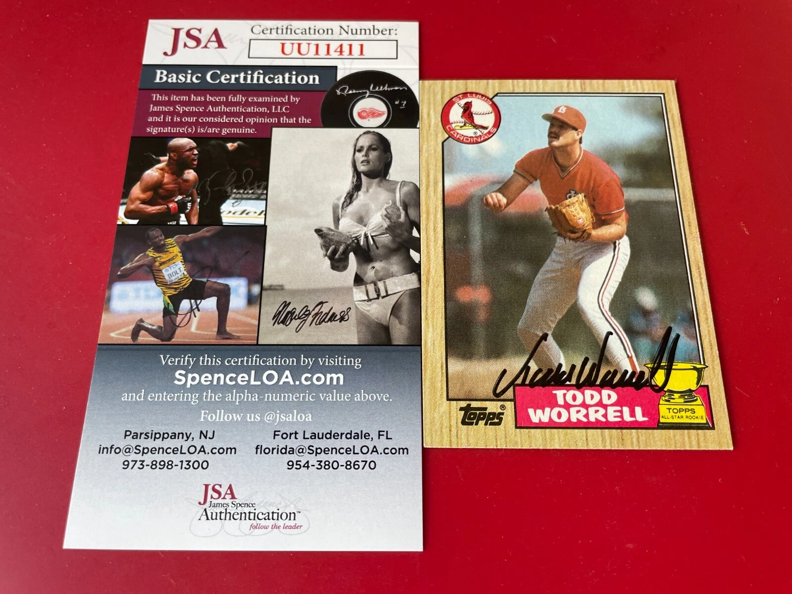 TODD WORRELL CARDINASL 1987 TOPPS CARD SIGNED AUTO JSA COA COLLECTIBLE MEMORABILIA