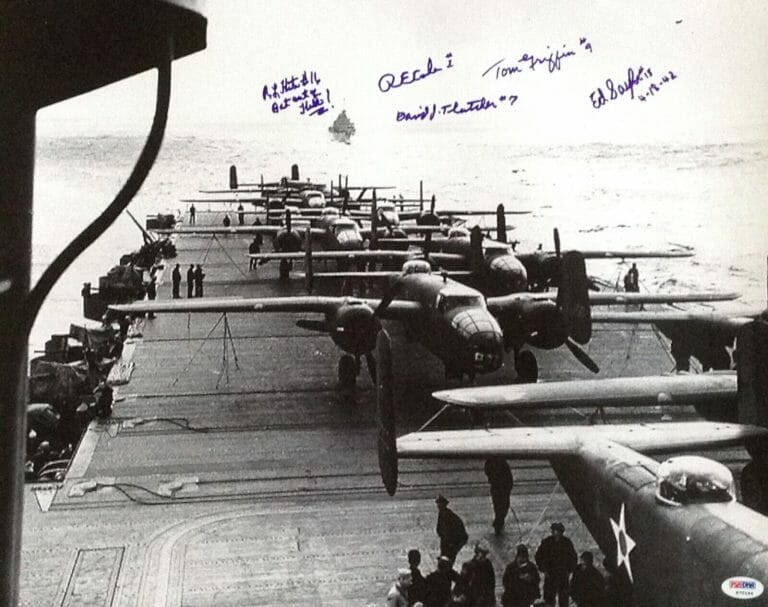 TOKYO DOOLITTLE RAIDERS MULTI SIGNED 16X20 PHOTOGRAPH PSA DNA K70164 X 5 RARE COLLECTIBLE MEMORABILIA