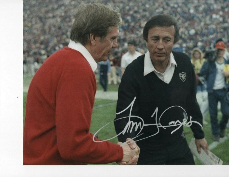 TOM FLORES SIGNED OAKLAND RAIDERS HANDSHAKE 8X10 COLLECTIBLE MEMORABILIA