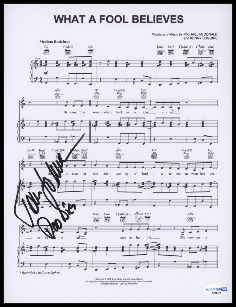 TOM JOHNSTON “THE DOOBIE BROTHERS” SIGNED ‘WHAT A FOOL BELIEVES’ SHEET MUSIC COLLECTIBLE MEMORABILIA